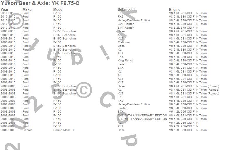 Below is an abreviated list of applications for the Yukon Differential Master Overhaul Kit.
