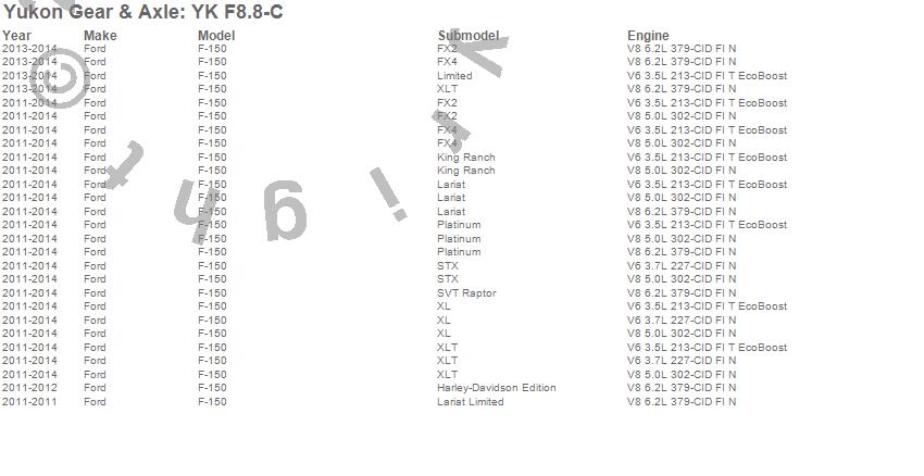 Below is an abreviated list of applications for the Yukon Differential Master Overhaul Kit.