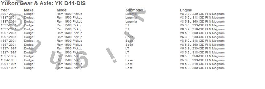 Below is an abreviated list of applications for the Yukon Differential Master Overhaul Kit.