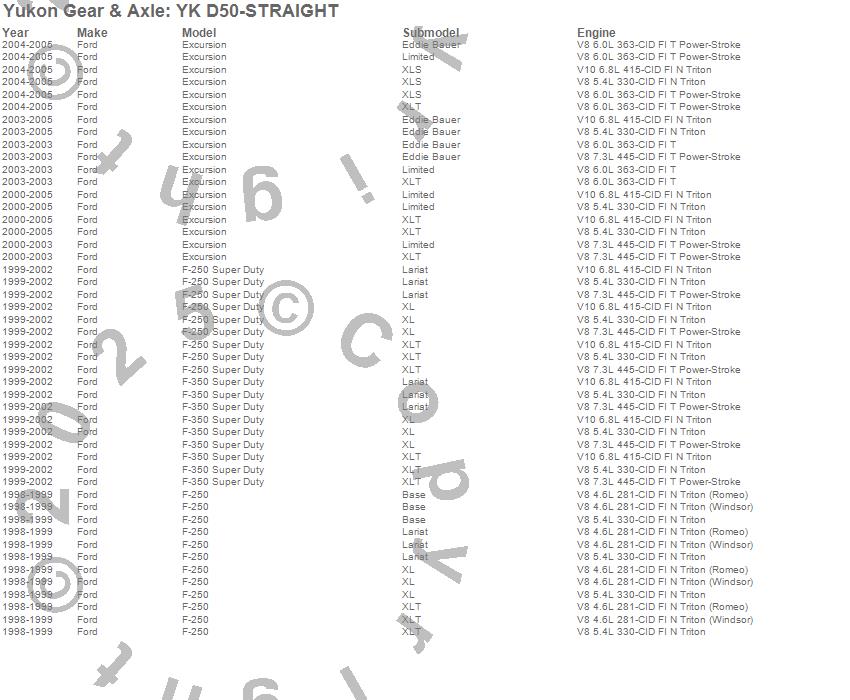 Below is an abreviated list of applications for the Yukon Differential Master Overhaul Kit.