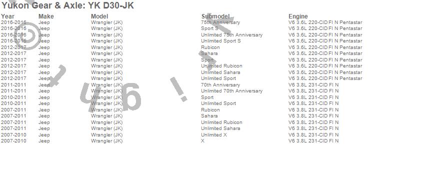 Below is an abreviated list of applications for the Yukon Differential Master Overhaul Kit.