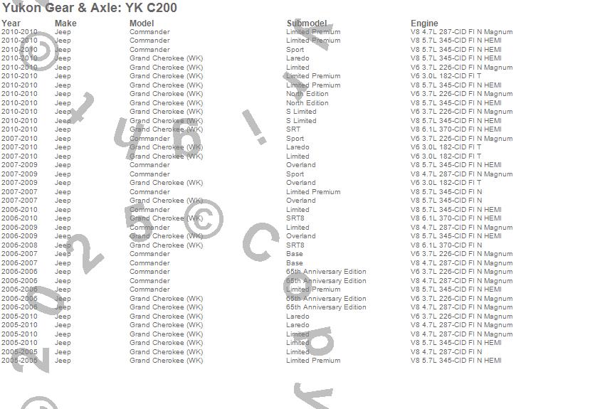 Below is an abreviated list of applications for the Yukon Differential Master Overhaul Kit.