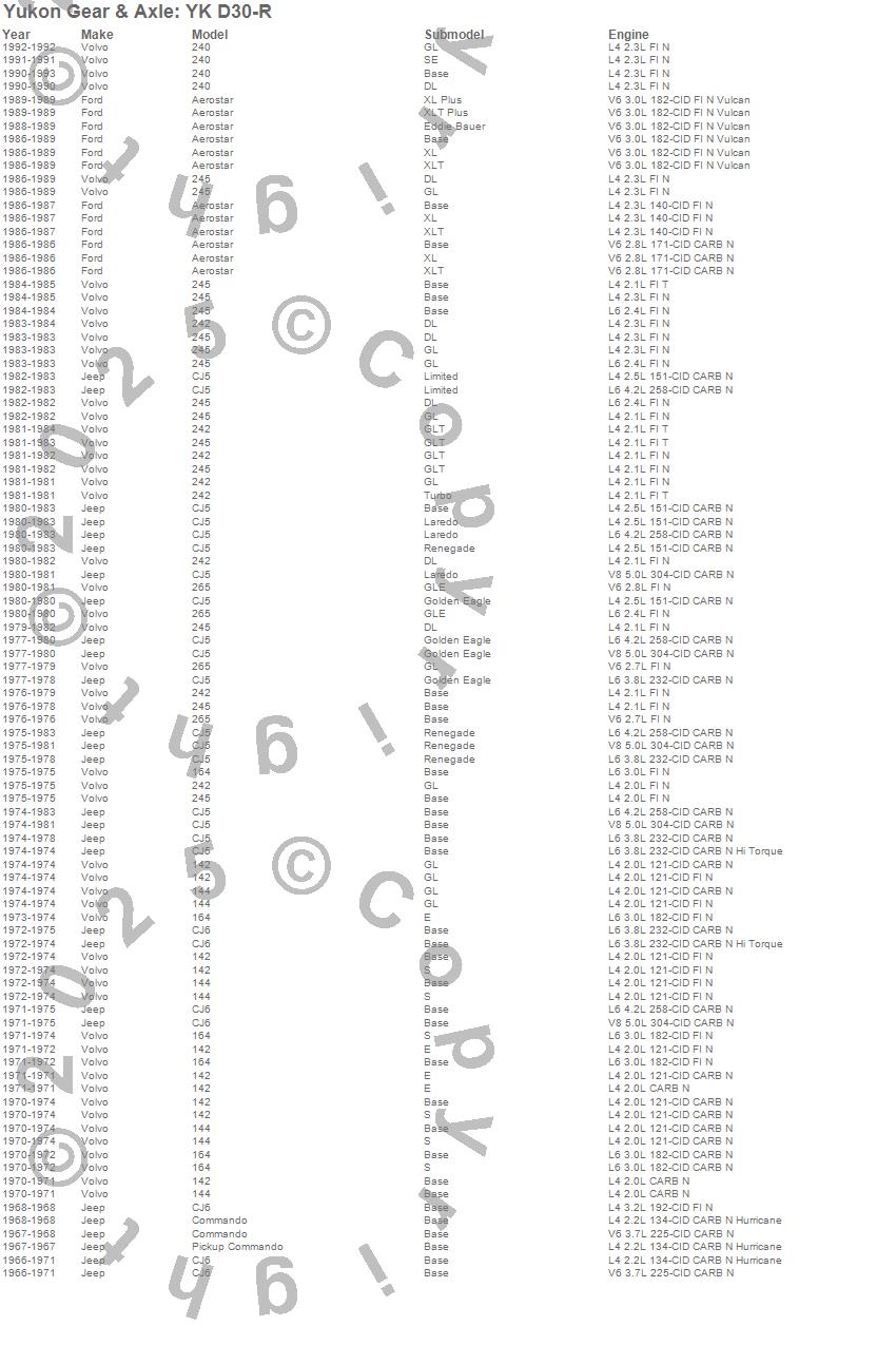 Below is an abreviated list of applications for the Yukon Differential Master Overhaul Kit.