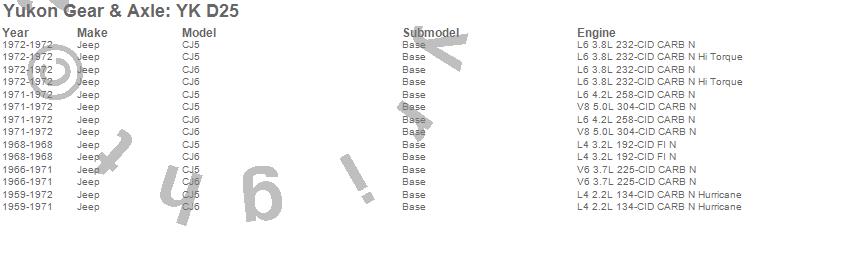 Below is an abreviated list of applications for the Yukon Differential Master Overhaul Kit.