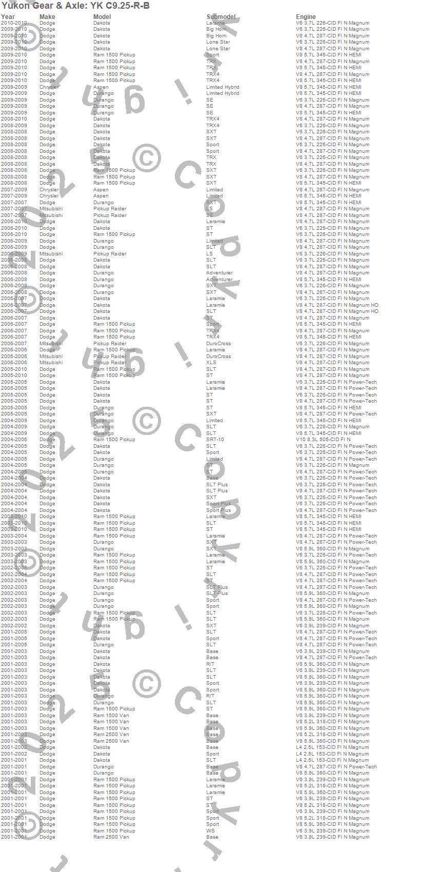 Below is an abreviated list of applications for the Yukon Differential Master Overhaul Kit.