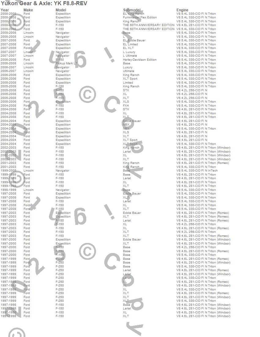 Below is an abreviated list of applications for the Yukon Differential Master Overhaul Kit.