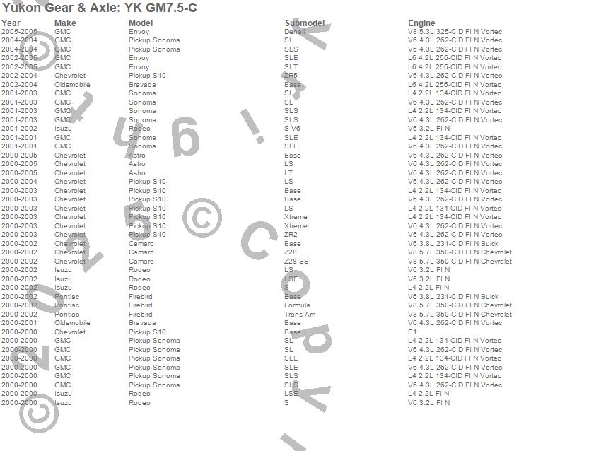Below is an abreviated list of applications for the Yukon Differential Master Overhaul Kit.