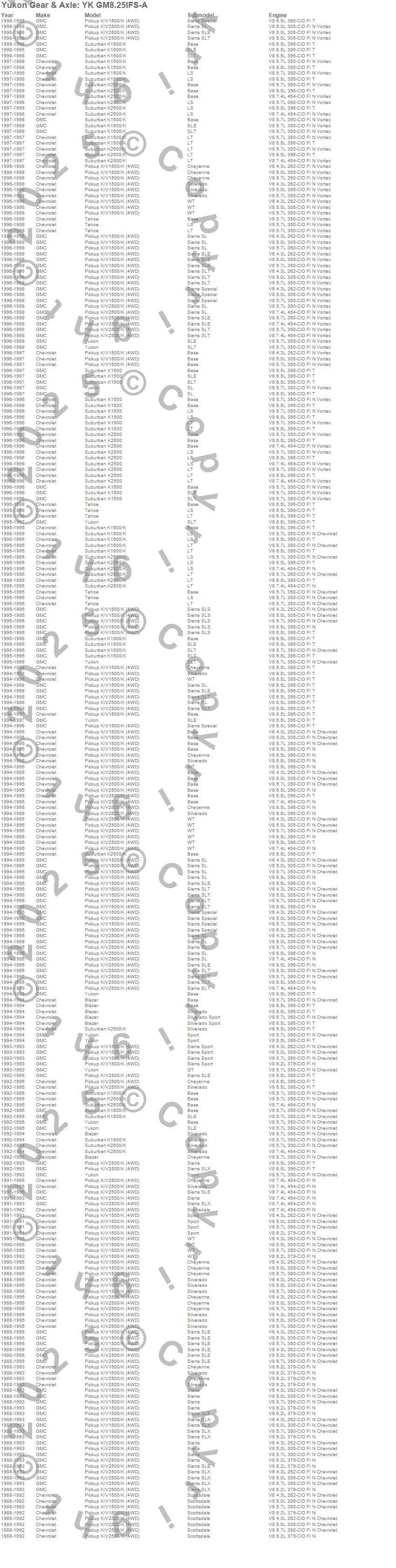 Below is an abreviated list of applications for the Yukon Differential Master Overhaul Kit.