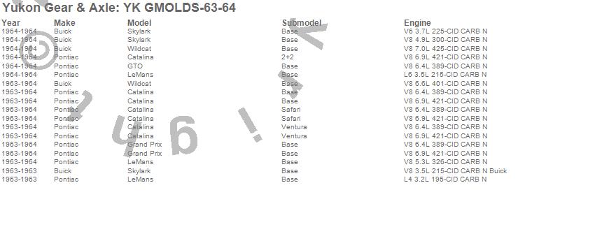 Below is an abreviated list of applications for the Yukon Differential Master Overhaul Kit.