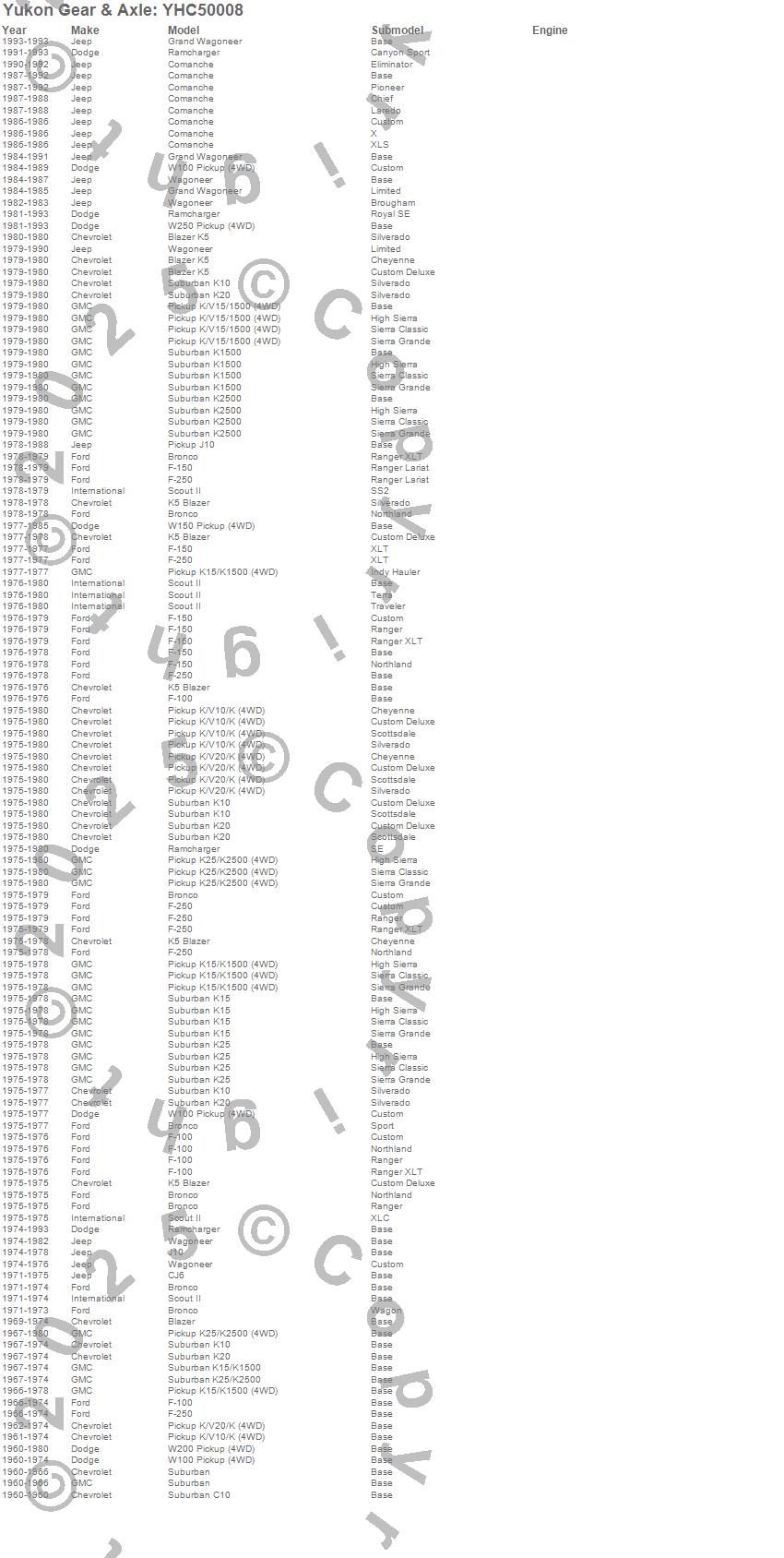 Below is an abreviated list of applications for the Yukon Hardcore Drive Flange.