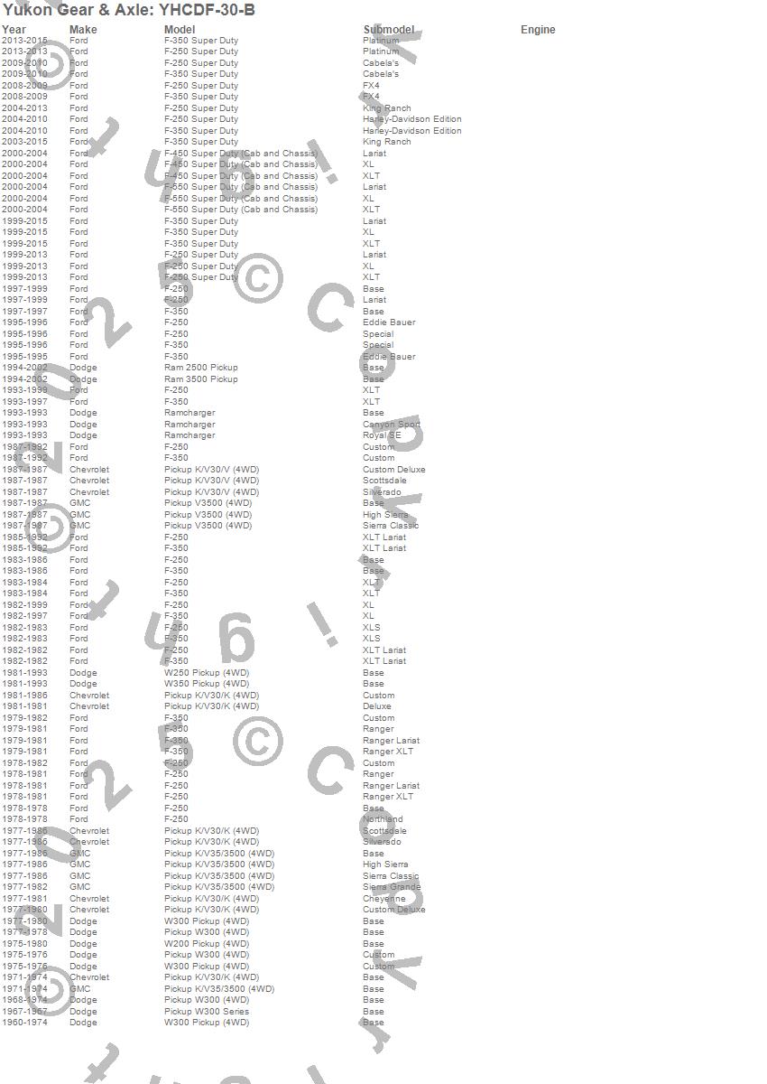 Below is an abreviated list of applications for the Yukon Hardcore Drive Flange.