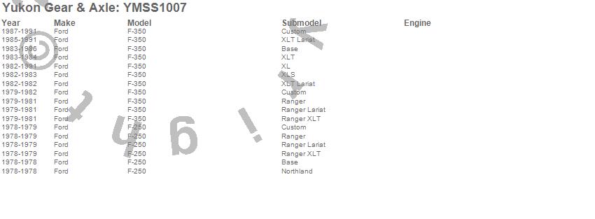 Below is an abreviated list of applications for the Yukon Mighty King-Pin Seal.
