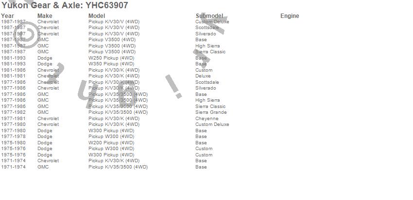 Below is an abreviated list of applications for the Yukon Hardcore Axle Hub.