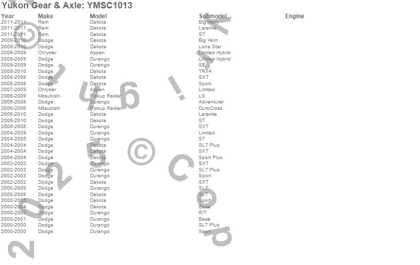 Below is an abreviated list of applications for the Yukon Mighty Pinion Seal.