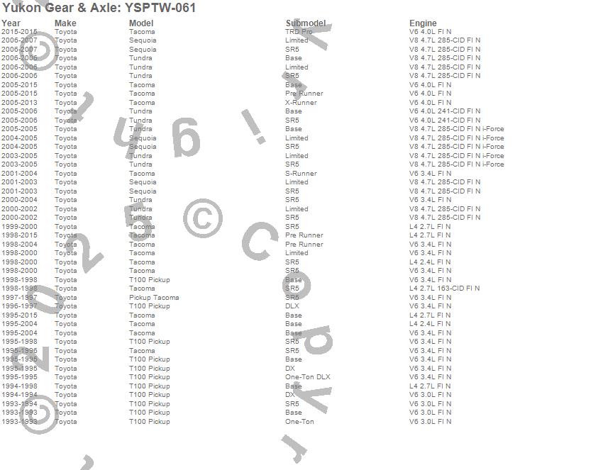 Sequoia, T100, T100 Pickup, Tacoma, Tundra, Toyota, 2014, 2013, 2012, 2011, 2010, 2009, 2008, 2007, 2006, 2005, 2004, 2003, 2002, 2001 more…