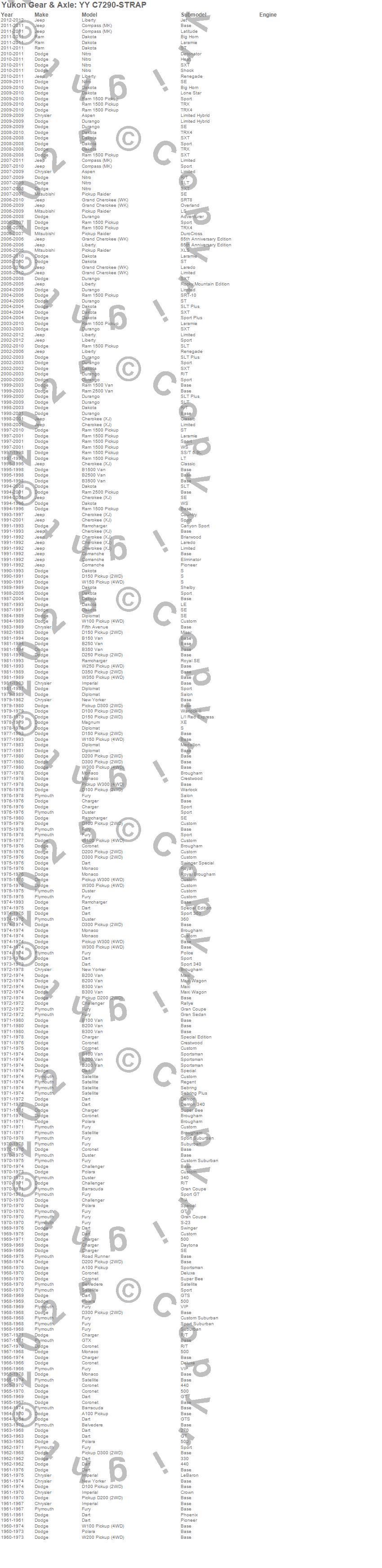 Below is an abreviated list of applications for the U-Joint Strap Kit.