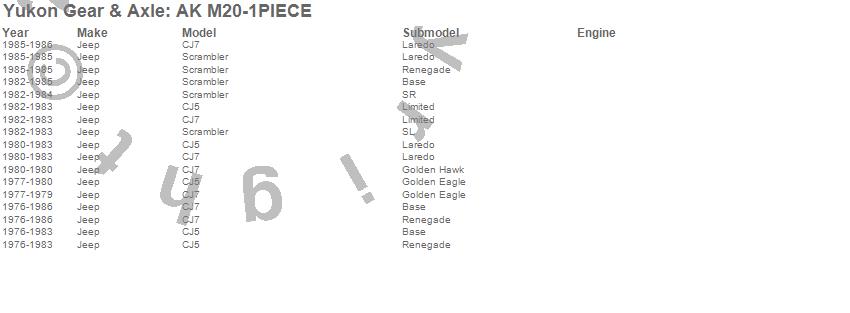 Yukon Gear & Axle Axle Bearing/Seal Kit # AK M20-1PIECE - AMC 20 - Rear - Incl. Timken-Type Axle Bearing/Seals/Shims