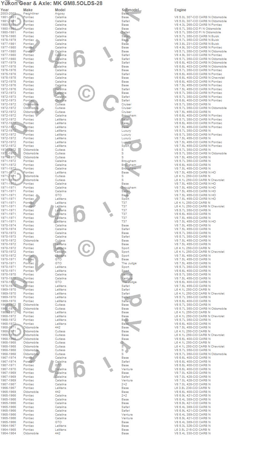 Below is an abreviated list of applications for the Minor Differential Install Kit.