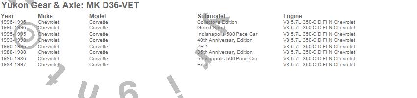 Below is an abreviated list of applications for the Minor Differential Install Kit.