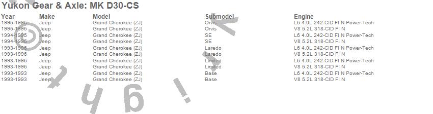 Below is an abreviated list of applications for the Minor Differential Install Kit.