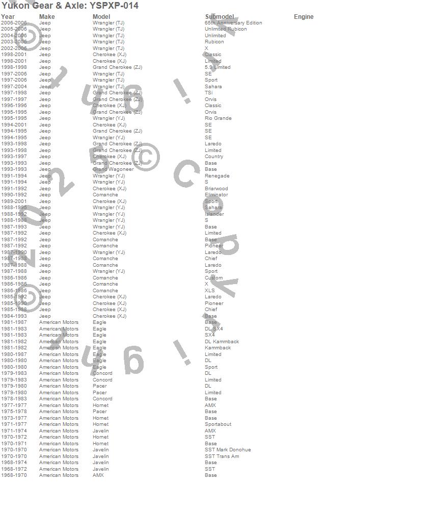 AMX, Cherokee (XJ), Comanche, Concord, Eagle, Grand Cherokee (ZJ), Grand Wagoneer, Hornet, Javelin, Pacer, Wrangler (JK), Wrangler (TJ), Wrangler (YJ), American Motors, Jeep, 2012, 2011, 2010, 2009, 2008 more…
