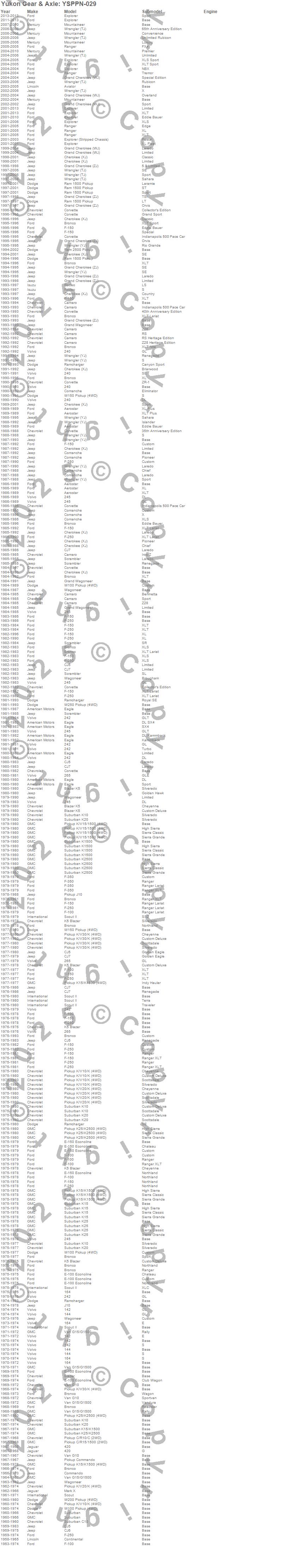 Below is an abreviated list of applications for the Pinion Nut Washer.