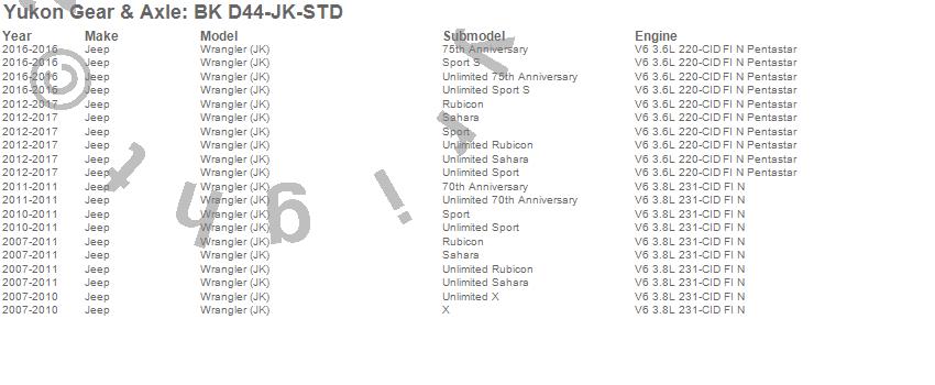 Below is an abreviated list of applications for the Differential Bearing Kit.