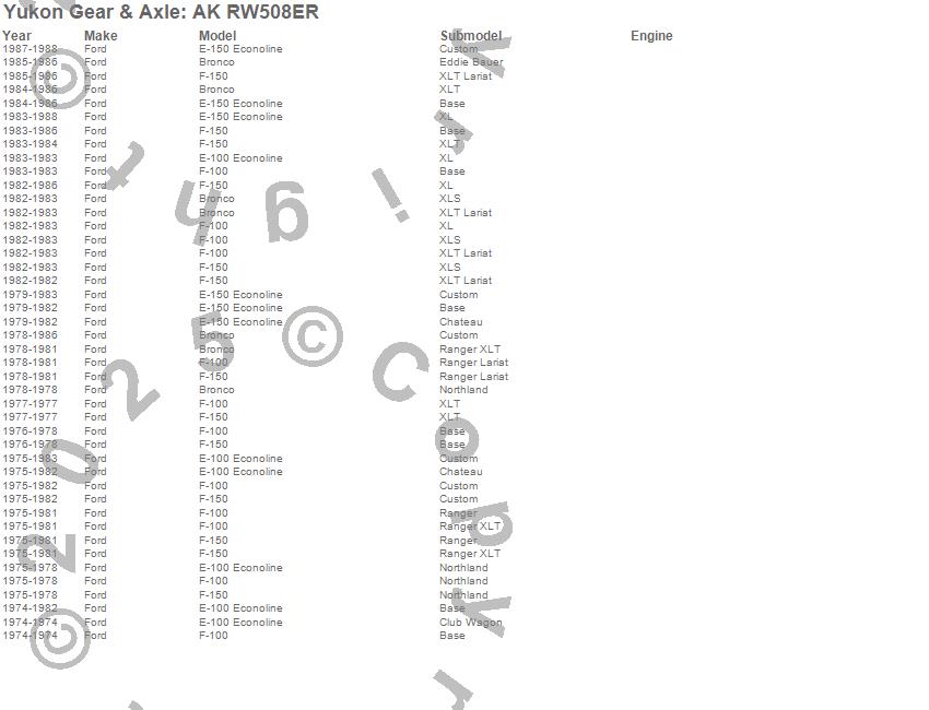 Below is an abreviated list of applications for the Axle Bearing.