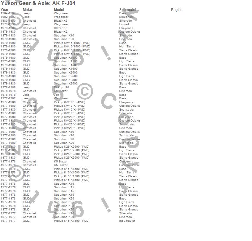 Below is an abreviated list of applications for the Axle Bearing/Seal Kit.