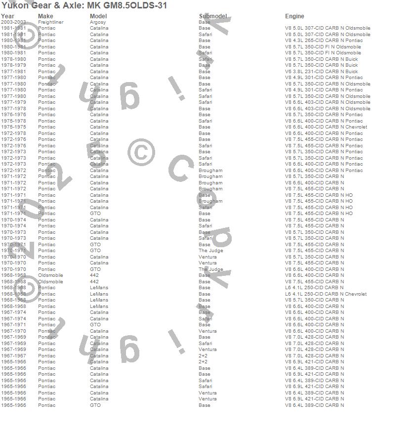 Below is an abreviated list of applications for the Minor Differential Install Kit.