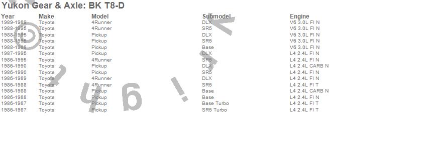 Below is an abreviated list of applications for the Differential Bearing Kit.