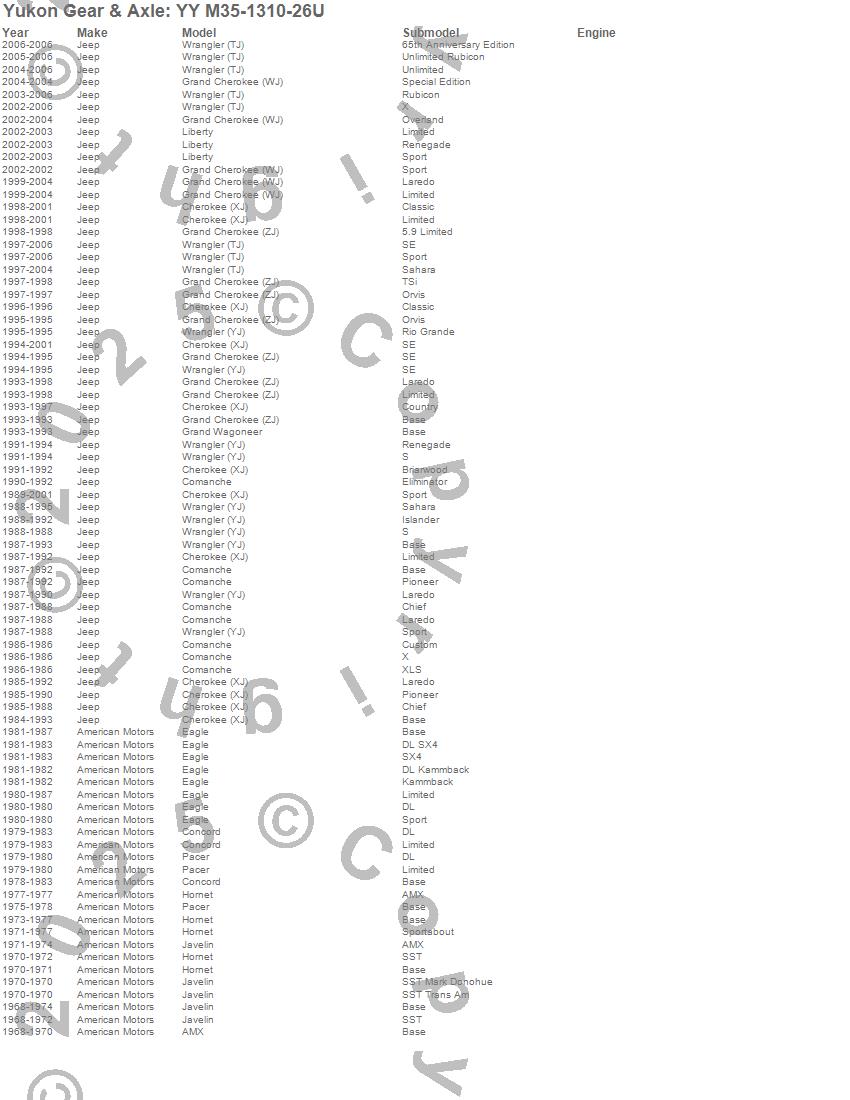 Below is an abreviated list of applications for the Pinion Yoke.