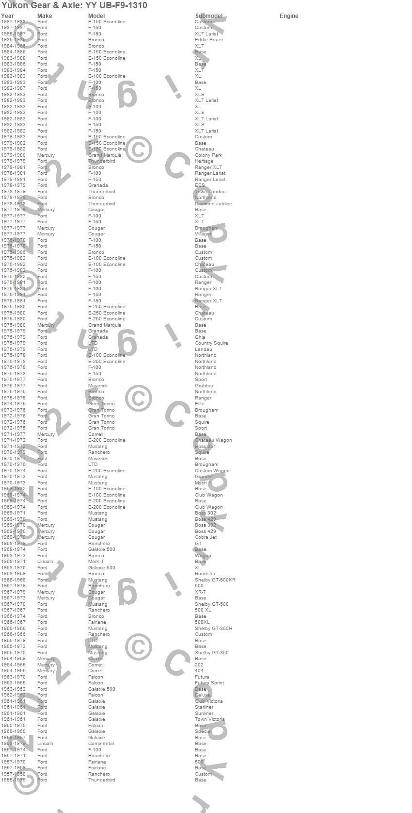 Below is an abreviated list of applications for the Universal Joint U-Bolt.