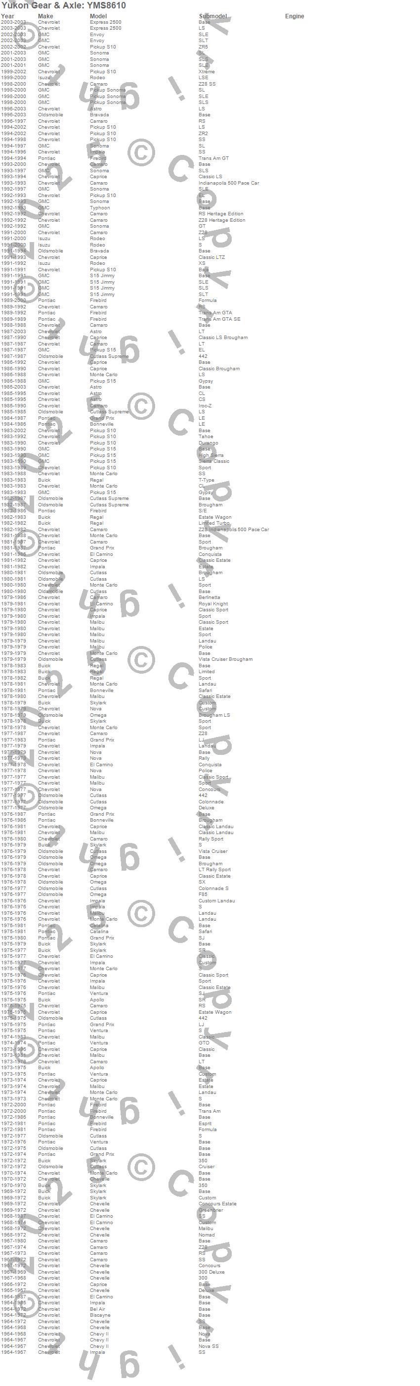 Below is an abreviated list of applications for the Yukon Mighty Pinion Seal.