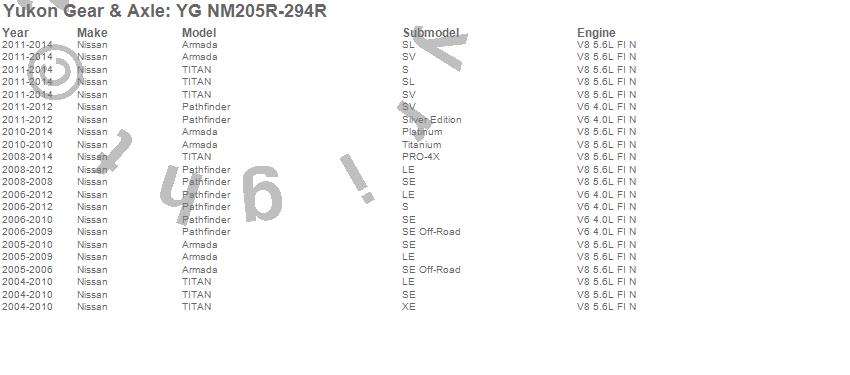 Yukon Gear & Axle Ring And Pinion Gear Set # YG NM205R-294R - NM205 - Front - 2.94 Ratio