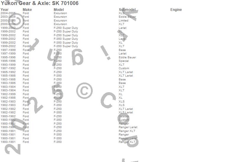 Below is an abreviated list of applications for the Carrier Shim Kit.