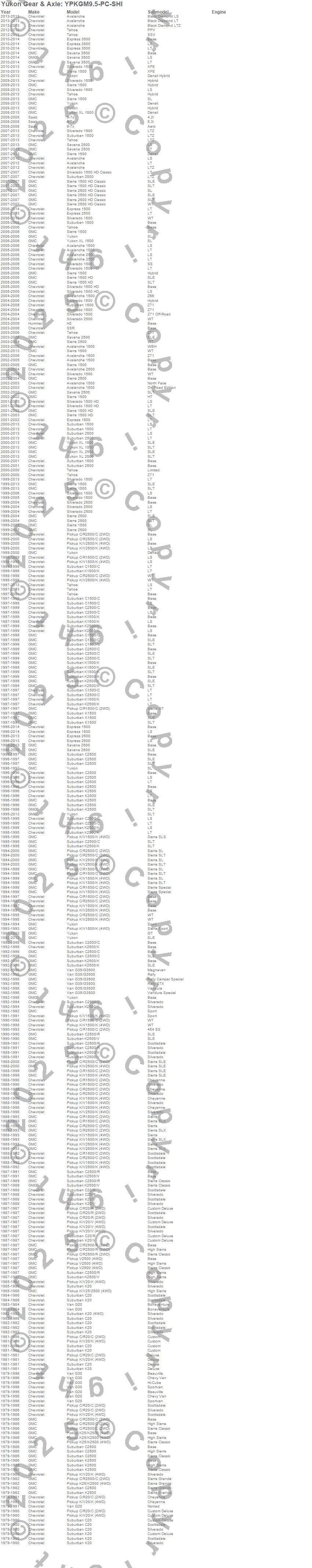 Avalanche, Avalanche 1500, Avalanche 2500, C1500, C1500 Pickup, C1500 Suburban, C20 Pickup, C2500 Pickup, C2500 Suburban, Express 1500, Express 2500, G20 Van, G30 Van, G35/G3500 Van, H2, K1500, K1500 Pickup, K1500 Suburban, K20 Pickup, K2500 Pickup more…