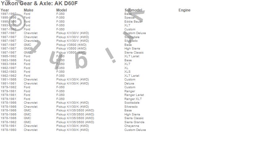 Below is an abreviated list of applications for the Axle Bearing/Seal Kit.