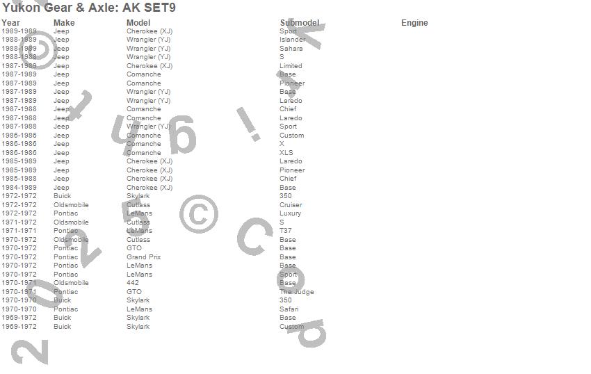 Below is an abreviated list of applications for the Axle Bearing/Seal Kit.
