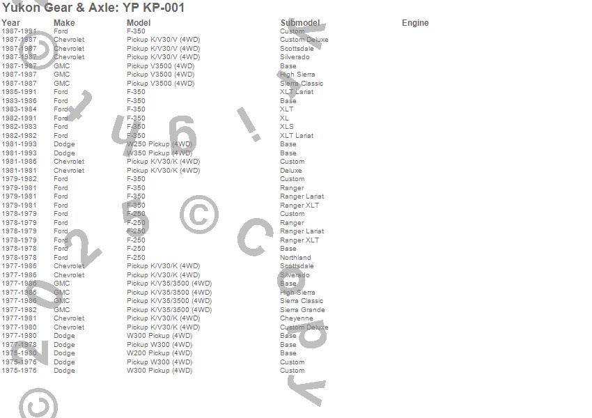 Below is an abreviated list of applications for the Steering King Pin Kit.