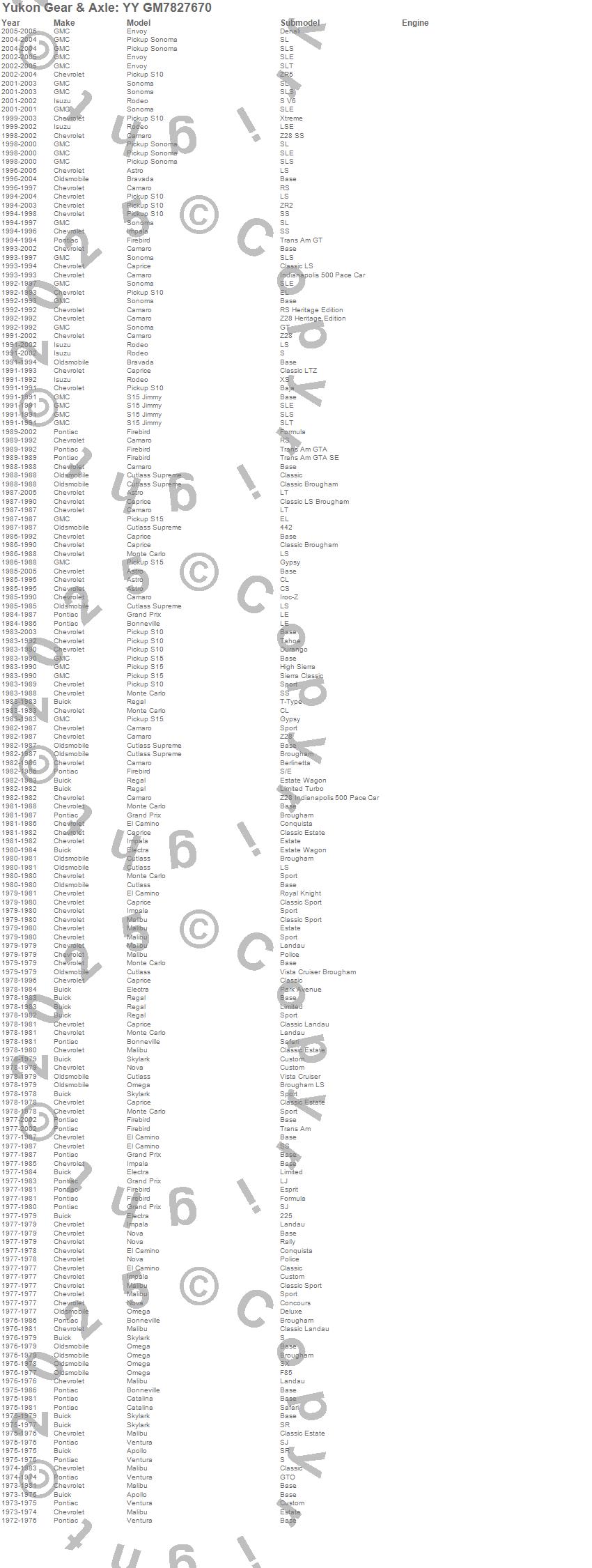 Apollo, Astro, Blazer (South America), Bonneville, Bravada, Camaro, Caprice, Catalina, Cutlass, Cutlass Calais, Cutlass Ciera, Cutlass Cruiser, Cutlass Salon, Cutlass Supreme, El Camino, Electra, Envoy, Envoy XL, Envoy XUV, Firebird more...
