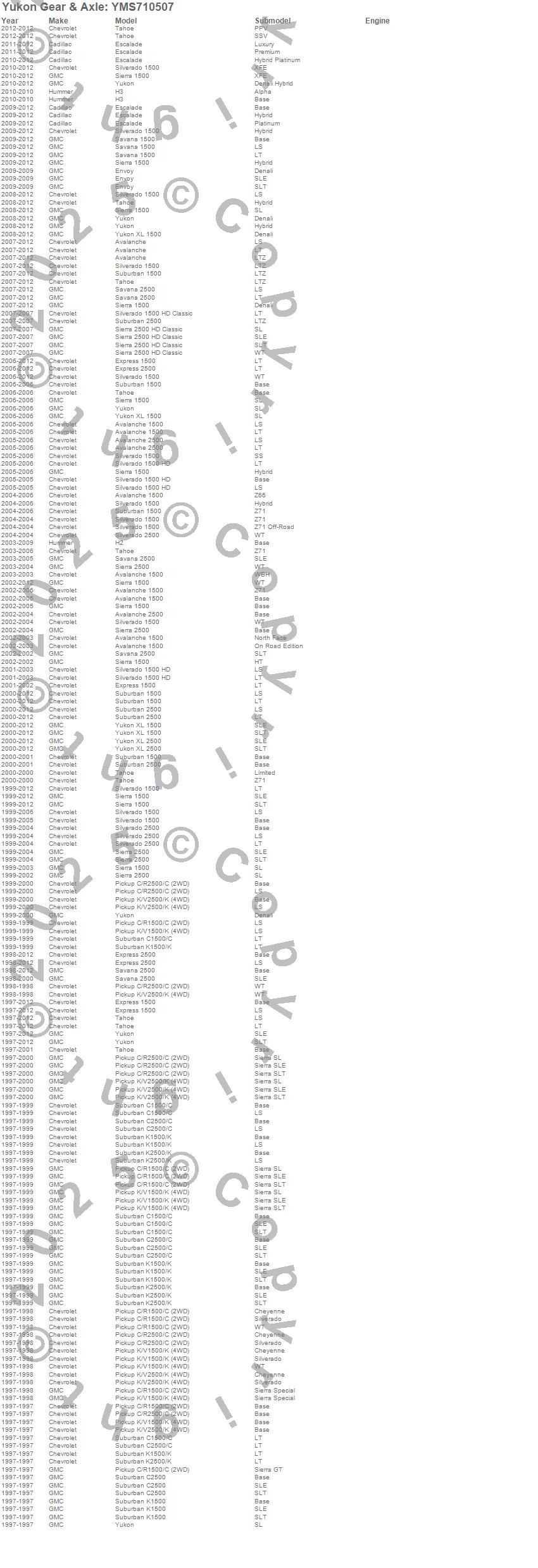 Avalanche, Avalanche 1500, Avalanche 2500, C1500 Pickup, C1500 Suburban, C2500 Pickup, Envoy, Envoy XL, Escalade, Escalade ESV, Escalade EXT, Express 1500, Express 2500, H2, K1500 Pickup, K1500 Suburban, K2500 Pickup, K2500 Suburban, Savana 2500, Sierra 1500 more…