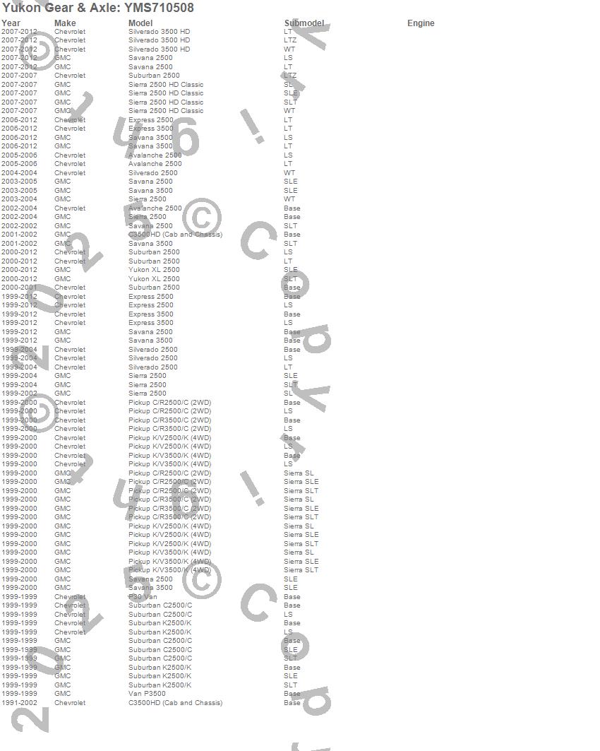 Below is an abreviated list of applications for the Yukon Mighty Pinion Seal.