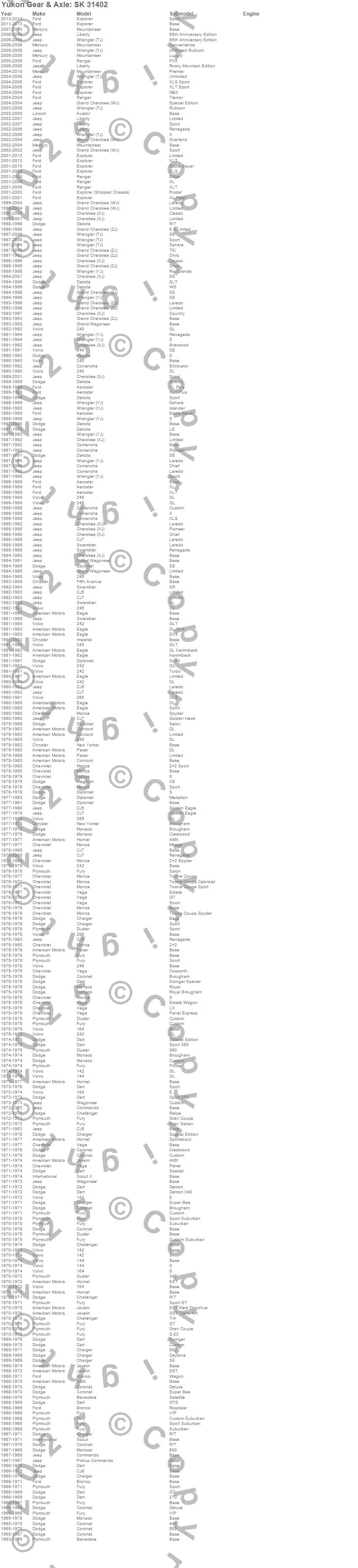 Below is an abreviated list of applications for the Pinion Depth Shim Kit.