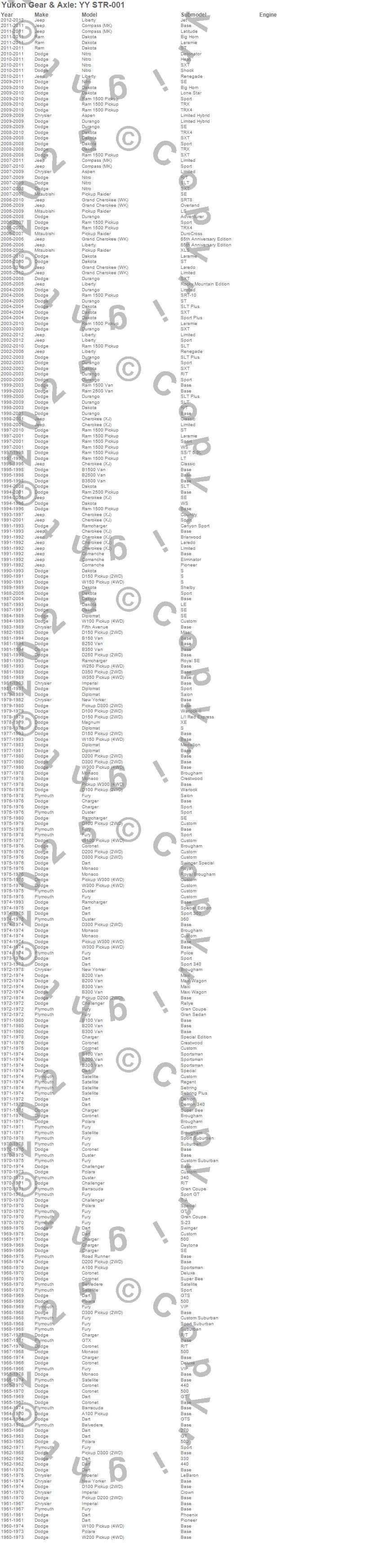 A100 Truck, A100 Van, Aspen, B100 Van, B150 Van, B1500 Van, B200 Van, B250 Van, B2500 Van, B300 Van, B350 Van, B3500 Van, Barracuda, Belvedere, Belvedere II, Catalina, Catalina Ventura, Challenger, Charger, Cherokee (XJ) more…