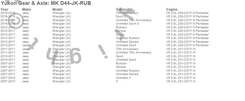 Yukon Gear & Axle Minor Differential Install Kit # MK D44-JK-RUB - Dana 44 - Incl. Pinion Seal/Crush Sleeve If Appl./Complete Shim Kit/Marking Compound/Brush/7/6 in. Ring Gear Bolt