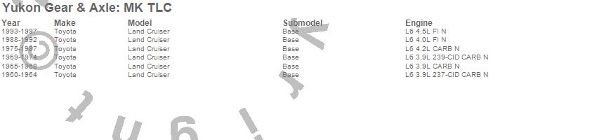 Below is an abreviated list of applications for the Minor Differential Install Kit.