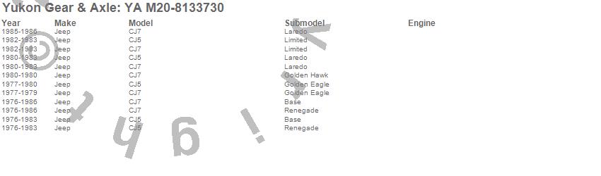 Below is an abreviated list of applications for the Axle Hub.