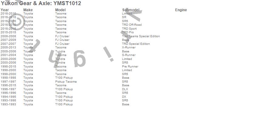Below is an abreviated list of applications for the Yukon Mighty Pinion Seal.