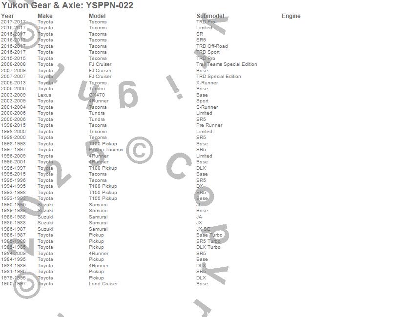 Below is an abreviated list of applications for the Pinion Nut.